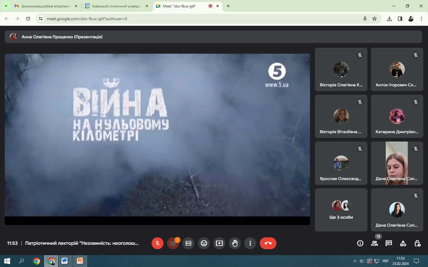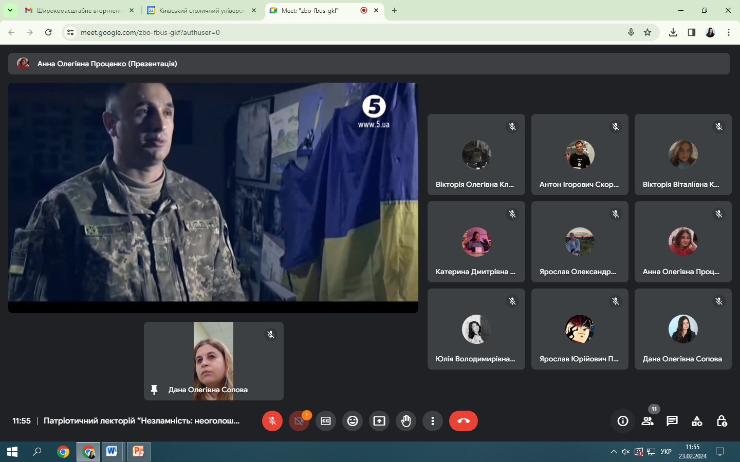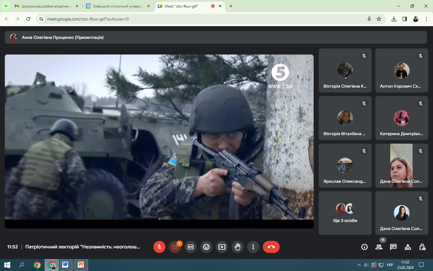 23.02.2024р. було проведено патріотичний лекторій “Незламність: неоголошена війна” для студентів IV курсу спеціальності "014 Середня освіта (Фізична культура)" та викладачів Фахового коледжу "Універсум".