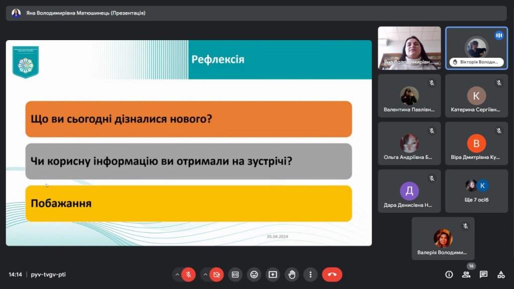 Модератор: викладач циклової комісії з педагогічної освіти – Матюшинець Яна Володимирівна.