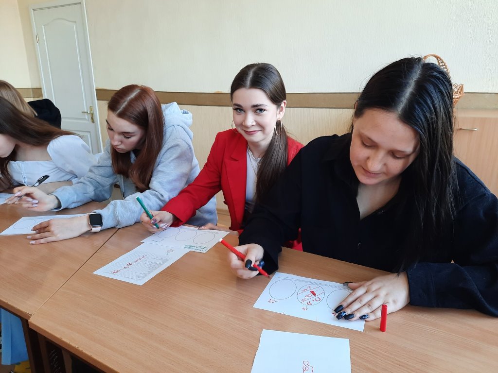 10 квітня 2024 року із студентами другого курсу Фахового коледжу «Універсум» Київського столичного університету імені Бориса Грінченка спеціальності «Хореографія» разом з соціальними працівниками Всеукраїнського громадського центру «Волонтер» – Расквасовою Олесею та Нечепурною Мариною було проведено тренінгове заняття «Самопізнання (цінності)».