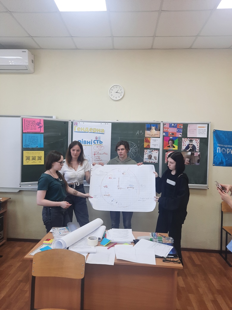 9 квітня 2024 року зі студентами четвертого курсу Фахового коледжу «Універсум» Київського столичного університету імені Бориса Грінченка спеціальності «Початкова освіта» разом з соціальними працівниками Всеукраїнського громадського центру «Волонтер» – Бердичевською Катериною та Лейбенко Ярославом було проведено тренінгове заняття «Гендерна рівність».