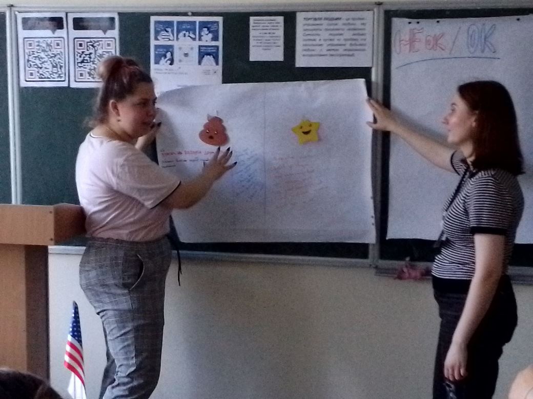24 травня 2024 року із студентами групи ДОфмб-2-21-3.0д Фахового коледжу «Універсум» Київського столичного університету імені Бориса Грінченка, разом з соціальними працівниками Всеукраїнського громадського центру «Волонтер» – Солошенко Ольгою та Болілою Мирославою було проведено тренінгове заняття «Протидія торгівлі людьми в часи війни».