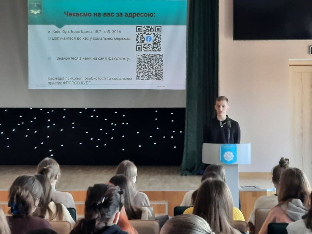 03 квітня 2025 року зі студентами третього та четвертого курсів спеціальності «Соціальна робота» і «Початкова освіта» Фахового коледжу «Універсум» Київського столичного університету імені Бориса Грінченка було проведено інтерактивне заняття «Твоє успішне майбутнє».