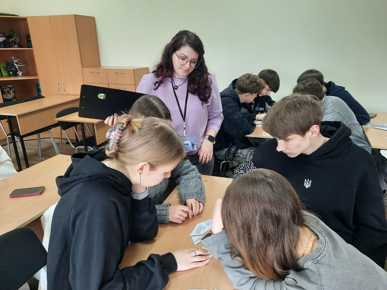 09 квітня 2025 року зі студентами другого курсу спеціальності «Організація виробництва» Фахового коледжу «Універсум» Київського столичного університету імені Бориса Грінченка було проведено інтерактивне заняття «Стосунки в житті людини». Захід відбувся в межах декади циклової комісії з педагогічної освіти за підтримки Ради випускників і Ради роботодавців Коледжу. Студенти мали можливість поспілкуватися з соціальним працівником Всеукраїнського громадського центру «Волонтер» Петровою Оленою.