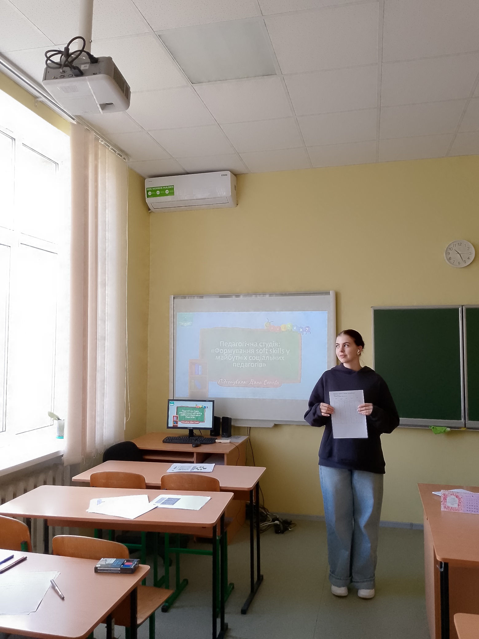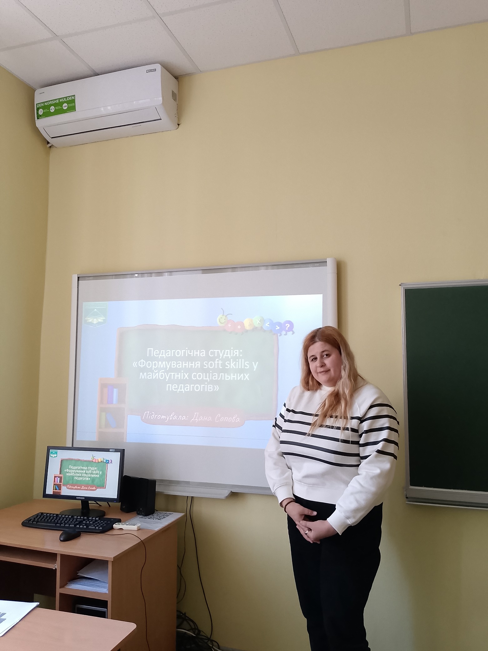 Формат: інтерактивна педагогічна студія з елементами тренінгу, міні-лекції, групових завдань та дискусій. Студенти підвищили обізнаність щодо ролі soft skills у професійній ефективності соціального педагога, активізували мотивацію до розвитку власних м’яких навичок, отримали практичні інструменти і стратегії для формування soft skills у процесі навчання, створили ментальну карту на тему: «Soft skills – мій ресурс у майбутній професії».