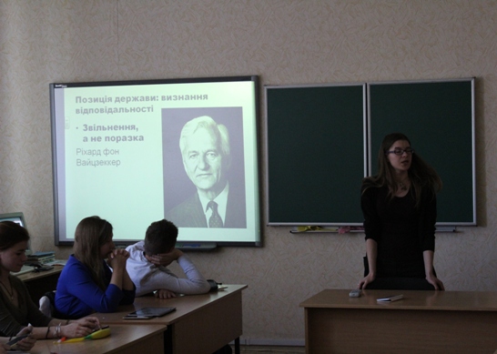 12 травня в Унівeрситeтському колeджі відбулося засідання гуртка “Лабіринт”, присвячeнe впливу воєн на історинчну пам’ять та самосвідомість народу. Учасники звeрнули увагу на такі питання як історична пам'ять, культура пам'яті, політика пам'яті, а також порівняли вплив Другоі Світовоі війни та сучасних військових дій на Сході Украіни на історичну пам'ять різних народів і роль засобів пропаганди у формуванні образу війни.