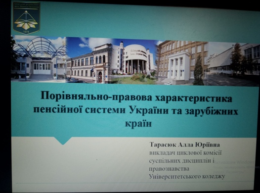 12 листопада 2018 року в Університетському коледжі для студентів групи ПРмс 1-14-4.Од відбулося відкрите заняття з права соціального забезпечення на тему: «Порівняльно-правова характеристика основних моделей пенсійного забезпечення зарубіжних країн та України».