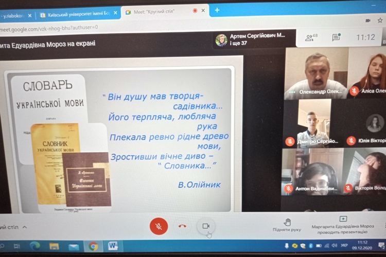 09.12.2020 до Дня народження Бориса Грінченка та Дня Університету відбувся круглий стіл "Історико-політичні погляди Бориса Грінченка". На заході були присутні студенти спеціальностей " Право" та " Менеджмент"