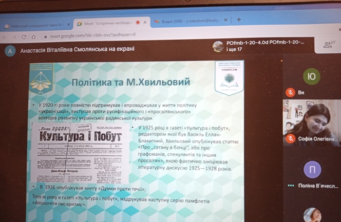 21 грудня 2020 року відбувся круглий стіл на тему «Радянська модернізація України, методи її здійснення». У заході взяли участь студенти групи ПOфмб-1-20-4.0д. Учасники круглого столу аналізували економічне, політичне, соціальне становище України кінця 20-х рр. ХХ століття. Розглянули причини, методи та результати індустріалізації як трагічної сторінки історії українського народу.