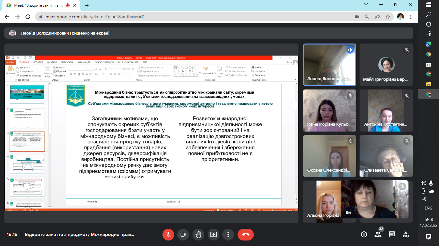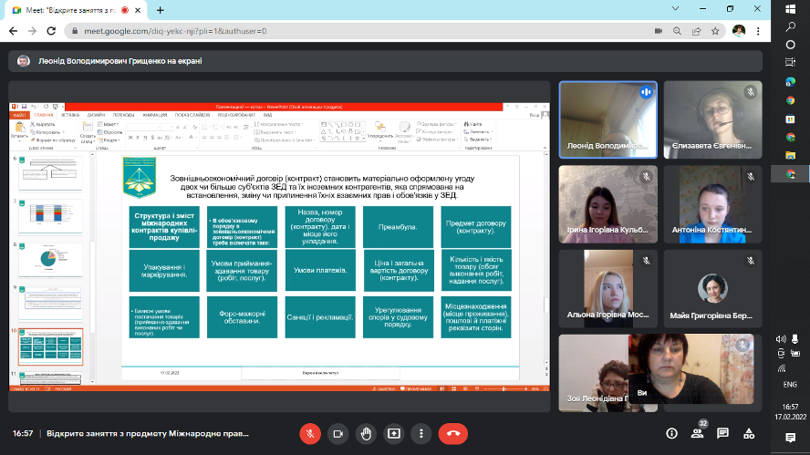 17 лютого 2022 року в Фаховому коледжі "Універсум" відбулось відкрите заняття з дисципліни "Міжнародне право" на тему: "Зовнішньоекономічний договір (контракт)".