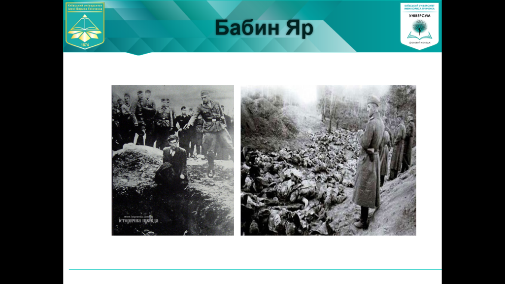 Студенти, переглянувши фото та відеодокументи, ознайомились з історією та сутністю Голокосту в Україні через призму трагедії Бабиного Яру, де з 1941 по 1943 рік було розстріляно близько 100 тисяч людей, переважна більшість яких були євреями та з тим, що криваві події в Бабиному Яру стали однією з найбільш масштабніших каральних акцій Другої світової війни.
