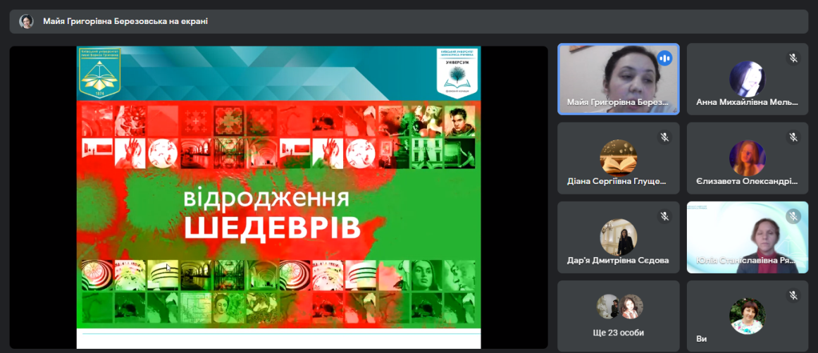 23 лютого 2023 року в Фаховому коледжі "Універсум" Київського університету імені Бориса Грінченка викладач циклової комісії суспільних дисциплін і правознавства Березовська Майя Григорівна провела відкрите заняття з дисципліни "Мистецтво" в групі ВСфмб-1-21-4.0д. на тему: "Розвиток скульптури в Україні".