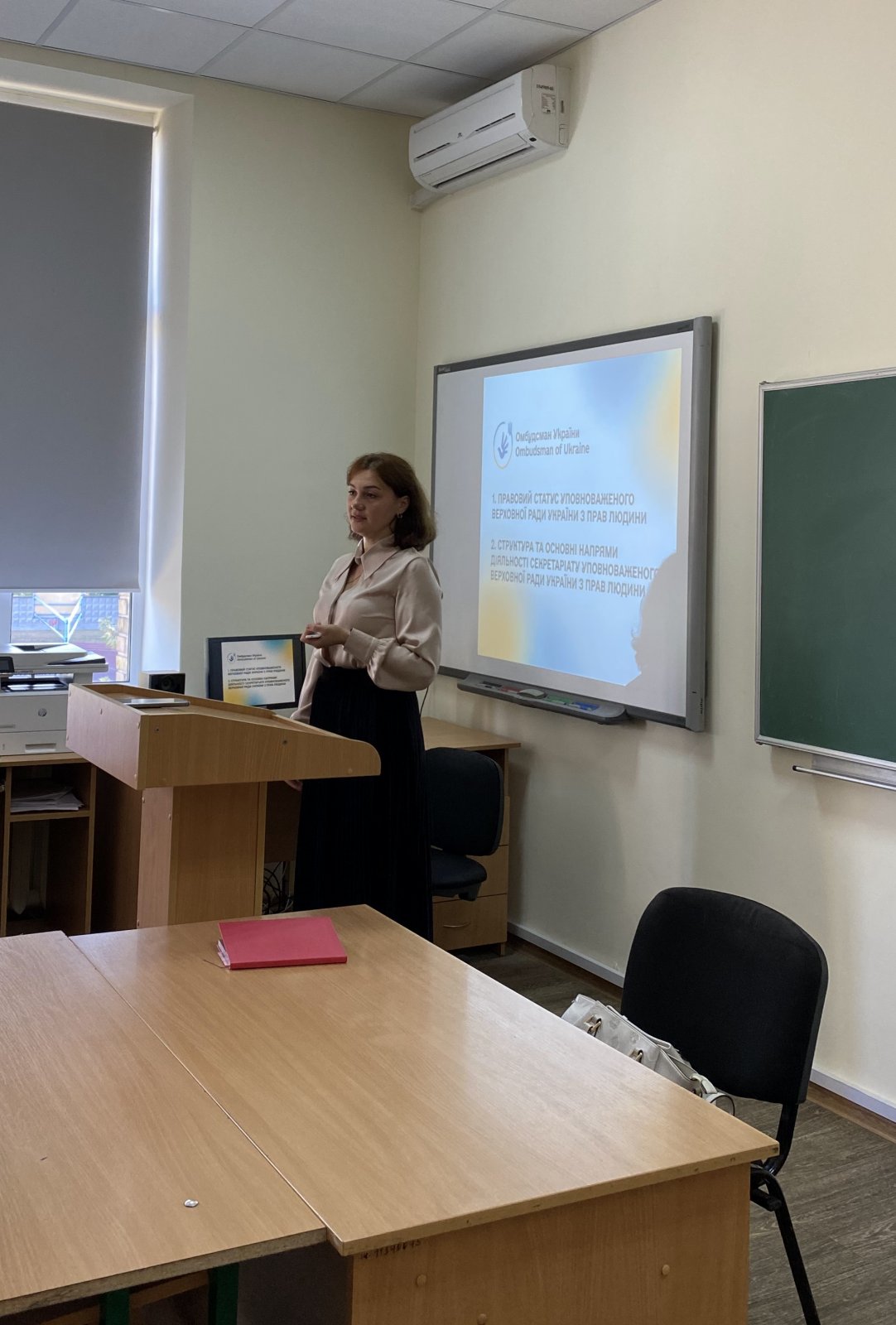 Наступним питанням, вартим окремої уваги, було ознайомлення студентів з пріоритетними напрями роботи Офісу Уповноваженого в умовах воєнного стану та пов’язаними з цим викликами.