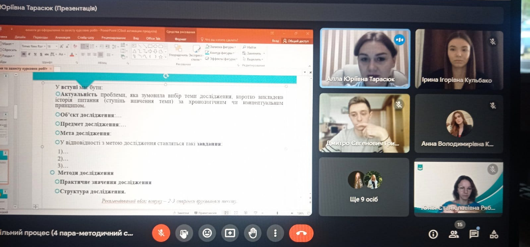 7 жовтня 2023 року в Фаховому коледжі "Універсум" Київського університету імені Бориса Грінченка для студентів 4 курсу спеціальності "Право" викладач циклової комісії суспільних дисциплін і правознавства Алла ТАРАСЮК провела методичний семінар "Методичні вимоги щодо оформлення та написання і захисту курсових робіт".