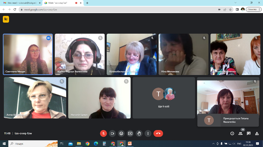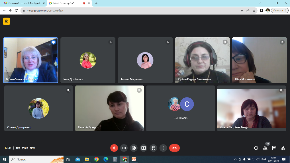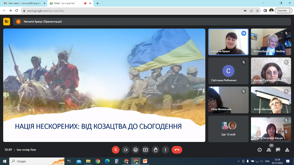 2 листопада 2023 року в рамках роботи методичного об'єднання голів циклових комісій соціально-економічних дисциплін педагогічних ЗФПО Центрального регіону України на базі КЗ СОР «Лебединський педагогічний фаховий коледж імені А. С. Макаренка» відбувся онлайн-семінар «Теорія та методика навчання суспільних дисциплін в умовах воєнного стану». Важливим питанням семінару було національно патріотичне виховання молоді в умовах війни. Зі своєю доповіддю «Національно-патріотичне виховання студентської молоді в умовах збройної агресії російської федерації» виступила викладачка Фахового коледжу «Універсум» Київського університету імені Бориса Грінченка Ольга БАЦУК. Ольга Петрівна ознайомила учасників семінару з основними напрямками діяльності циклової комісії суспільних дисциплін і правознавства та Фахового коледжу «Універсум», як закладу фахової передвищої освіти, у формуванні національно-патріотичної свідомості молоді та наголосила, що в умовах війни – це питання національної безпеки та значення.