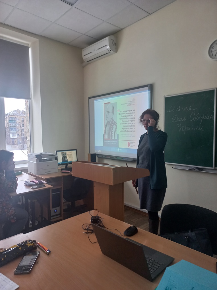 22 січня 2024 року в Фаховому коледжі «Універсум» до Дня Соборності України та річниці проголошення незалежності Української Народної Республіки в 1918 році в групі ПОфмб-1-23-3.0д викладачем циклової комісії суспільних дисциплін і правознавства Юлією РЯБОКОНЬ було проведено історичний лекторій на тему «Наша єдність – наша зброя».