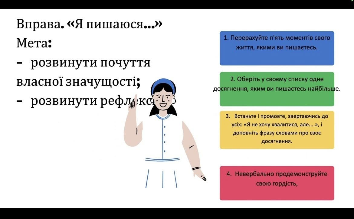 22 лютого 2025 року в Фаховому коледжі "Універсум" в рамках декади циклової комісії суспільних дисциплін і правознавства в групі ПРфмб-1-23-4.0д викладачка Майя БЕРЕЗОВСЬКА провела тренінгове заняття «Саморозкриття і усвідомлення сильних сторін особистості».