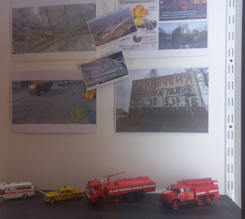 В експозиції представлено діораму з моделями автотехніки у масштабі 1:43, яка були задіяна для ліквідації наслідків аварії на ЧАЕС та евакуації населення з зони катастрофи.