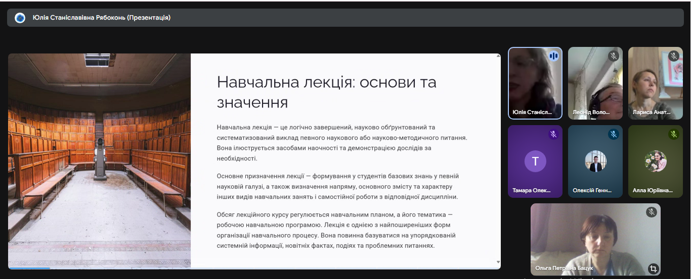 З доповідями про основні види та форми занять в фаховій передвищій освіті виступили: Рябоконь Юлія Станіславівна, Казаков Олександр Олексійович, Бацук Ольга Петрівна, Лім Лариса Анатоліївна - викладачі циклової комісії суспільних дисциплін і правознавства.