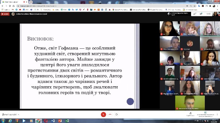 24 листопада 2020 року відбулося відкрите заняття викладача циклової комісії з видавничої справи, культури та української філології Ловейко Тетяни Володимирівни з дисципліни «Історія світової літератури» на тему «Специфіка німецького романтизму у фантастичних казках-повістях Е. Т. А. Гофмана» (група ВСмс-1-18-4.0д).