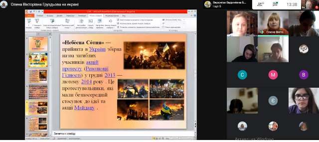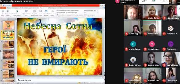 19 лютого - 20 лютого 2021 року, з нагоди вшанування пам'яті Героїв Небесної Сотні, у Фаховому коледжі "Універсум" Київського університету імені Бориса Грінченка відбулися кураторські години “З Україною в серці. Пам'яті Героїв Небесної Сотні” зі студентами 1 - 4 курсів спеціальності Журналістика. Студенти переглядали презентації, цитували поезії, зачитували власні творчі роботи: