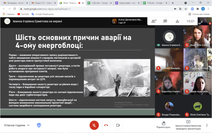 Студенти підготували презентацію та цікаву розповідь про ті жахливі дні в історії України, всього людства, брали активну участь в обговоренні, ділилися розповідями своїх батьків, рідних про трагічні події 1986 року.
