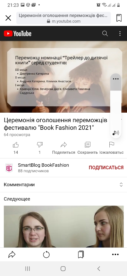 5 травня 2021 р. була проведена церемонія нагородження переможців VII Всеукраїнського фестивалю буктрейлерів Book fashion.