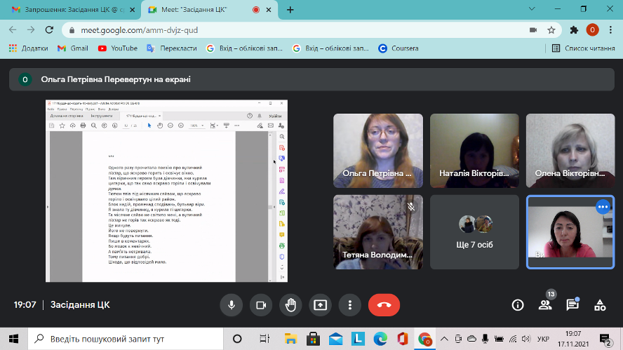17 листопада 2021 року відбулося чергове онлайн-засідання циклової комісії видавничої справи, культури та української філології.