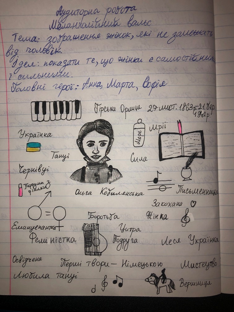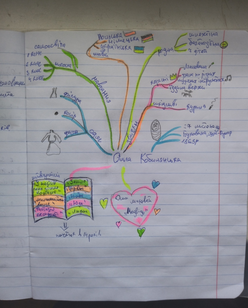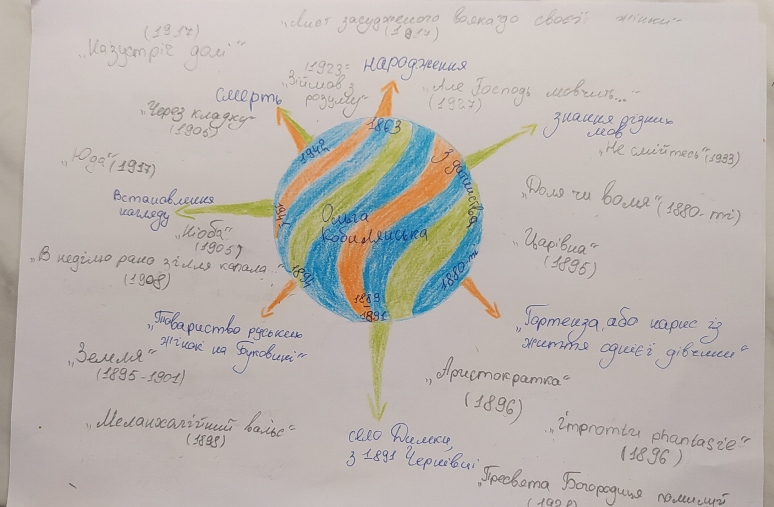 17 та 20 листопада на парах з української літератури студенти 1 курсу спеціальностей «Правознавство», «Музичне мистецтво», «Образотворче мистецтво», опрацьовуючи тему заняття , розробляли карти знань на тему: «Життєвий і творчий шлях Ольги Кобилянської».