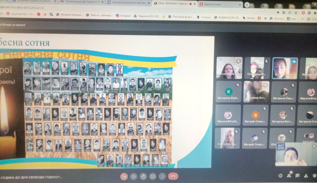 19 листопада 2021 року у Фаховому коледжі «Універсум» Київського університету імені Бориса Грінченка відбулася виховна година «Небесна сотня. Герої, що змінили хід історії», присвячена Дню Гідності та Свободи.