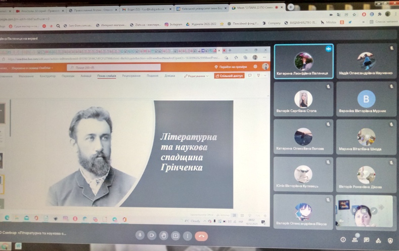 10 грудня 2021 року у Фаховому коледжі «Універсум» Київського університету імені Бориса Грінченка відбувся семінар «Літературна та наукова спадщина Бориса Грінченка».