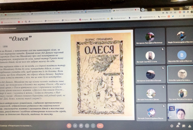 Мета заходу: ознайомити студентів з малою прозою, поезіями та науковими працями Б. Д. Грінченка.