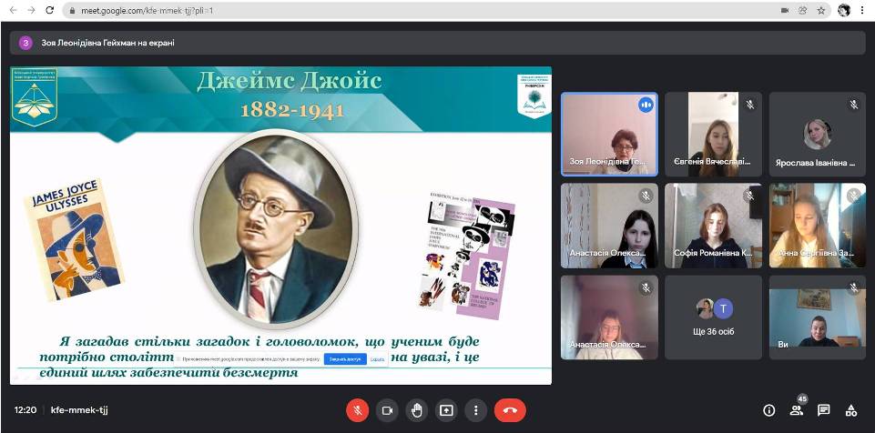 4 лютого 2022 року відбулось відкрите заняття з дисципліни "Зарубіжна література".