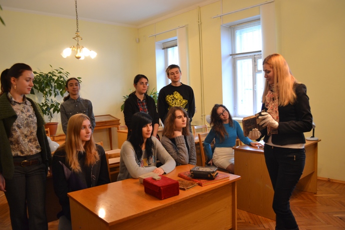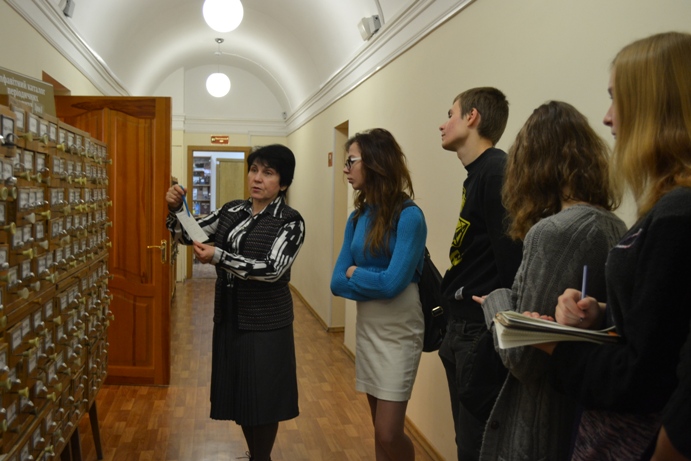 В рамках бібліотечного марафону, який тривав у період з 3.11.2014 р. по 7.11.2014 р. студенти ІІ курсу спеціальності «Бібліотечна справа» під керівництвом викладача Циклової комісії з видавничої справи, культури та української філології Сірої Олени Анатоліївни відвідали низку провідних університетських та публічних бібліотек м. Києва: Наукову бібліотеку Національного університету «Києво-Могилянська академія»