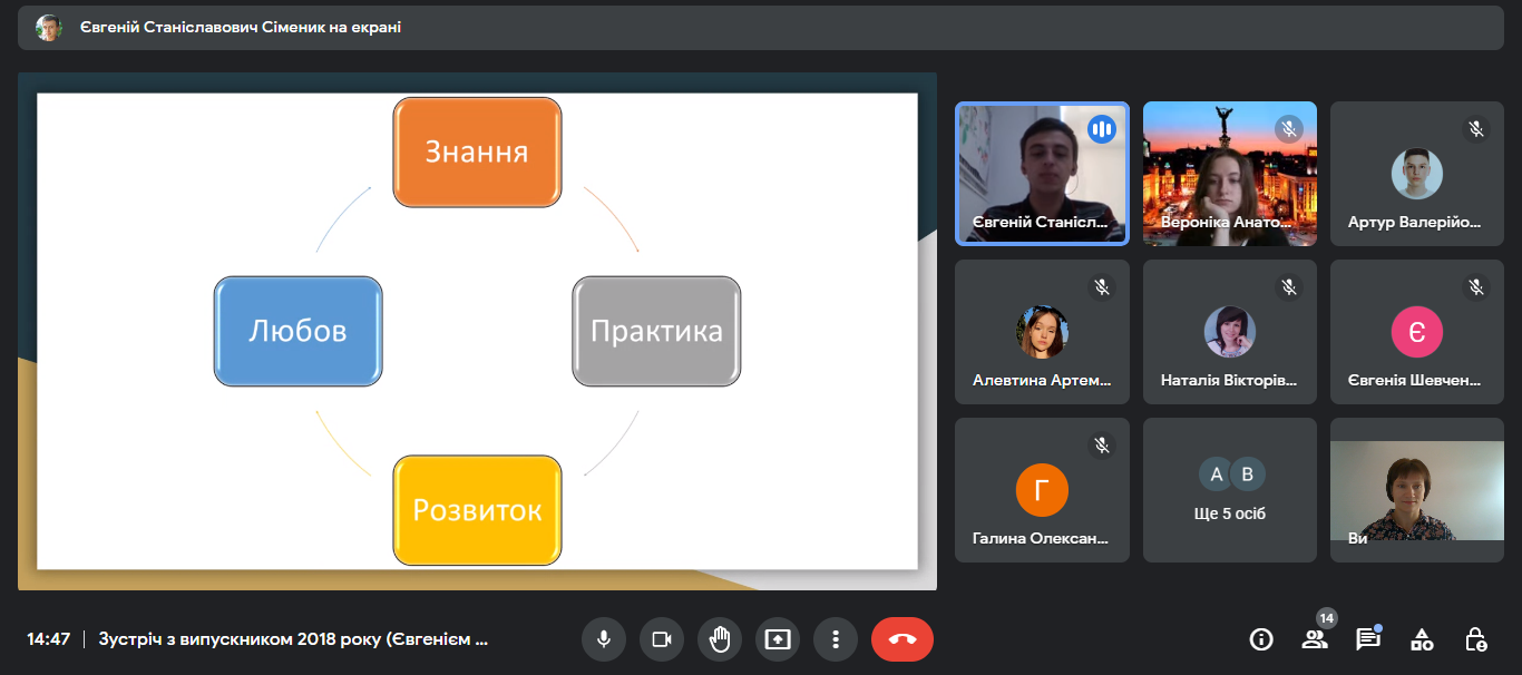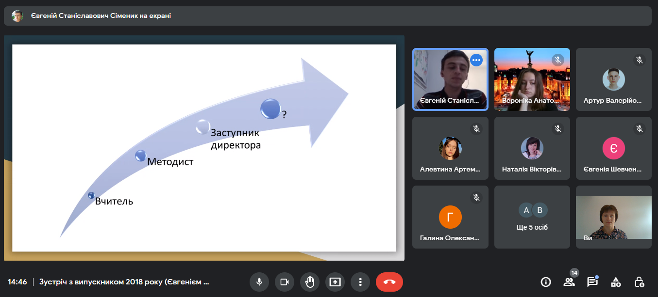 02.11.2022 року студенти групи 11ПО мали змогу поспілкуватися з випускником 2018 року спеціальності «Початкова освіта» Сімеником Євгенієм. Під час зустрічі Євгеній Станіславович розповів про свій педагогічний шлях від вчителя інформатики до замісника директора з навчально-виховної роботи. Студенти отримали поради як досягнути швидкого успіху та ознайомилися з методичними розробками та посібниками для учнів початкової школи розроблені Сімеником Євгенієм Станіславовичем.