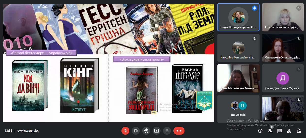 11.11.22 р. у Фаховому коледжі «Універсум» Київського університету імені Бориса Грінченка, у рамках декади циклової комісії з видавничої справи, культури та української філології, для студентів груп ВСфмб-1-21-4.0д., ВСфмб-1-20-4.0д., ВСмс-1-19-4.0д. відбувся воркшоп «Українські видання і видавництва».