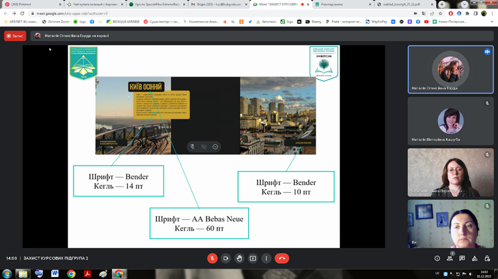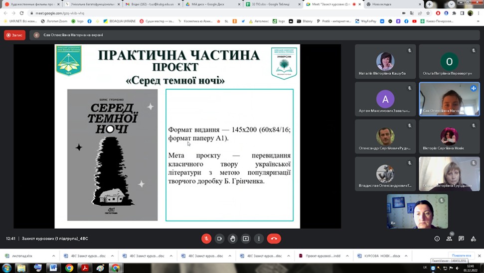 01 грудня 2022 року у Фаховому коледжі «Універсум» Київського університету імені Бориса Грінченка відбувся захист курсових робіт студентів 4 курсу спеціальності Журналістика.