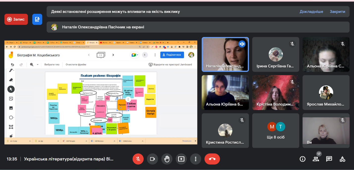 Студенти ознайомились з теоретичним матеріалом, навчились визначати проблематику новели її автобіографічність та знаходити ознаки імпресіонізму. Викладачка запропонувала сучасні інтерактивні методи для роботи зі студентами.