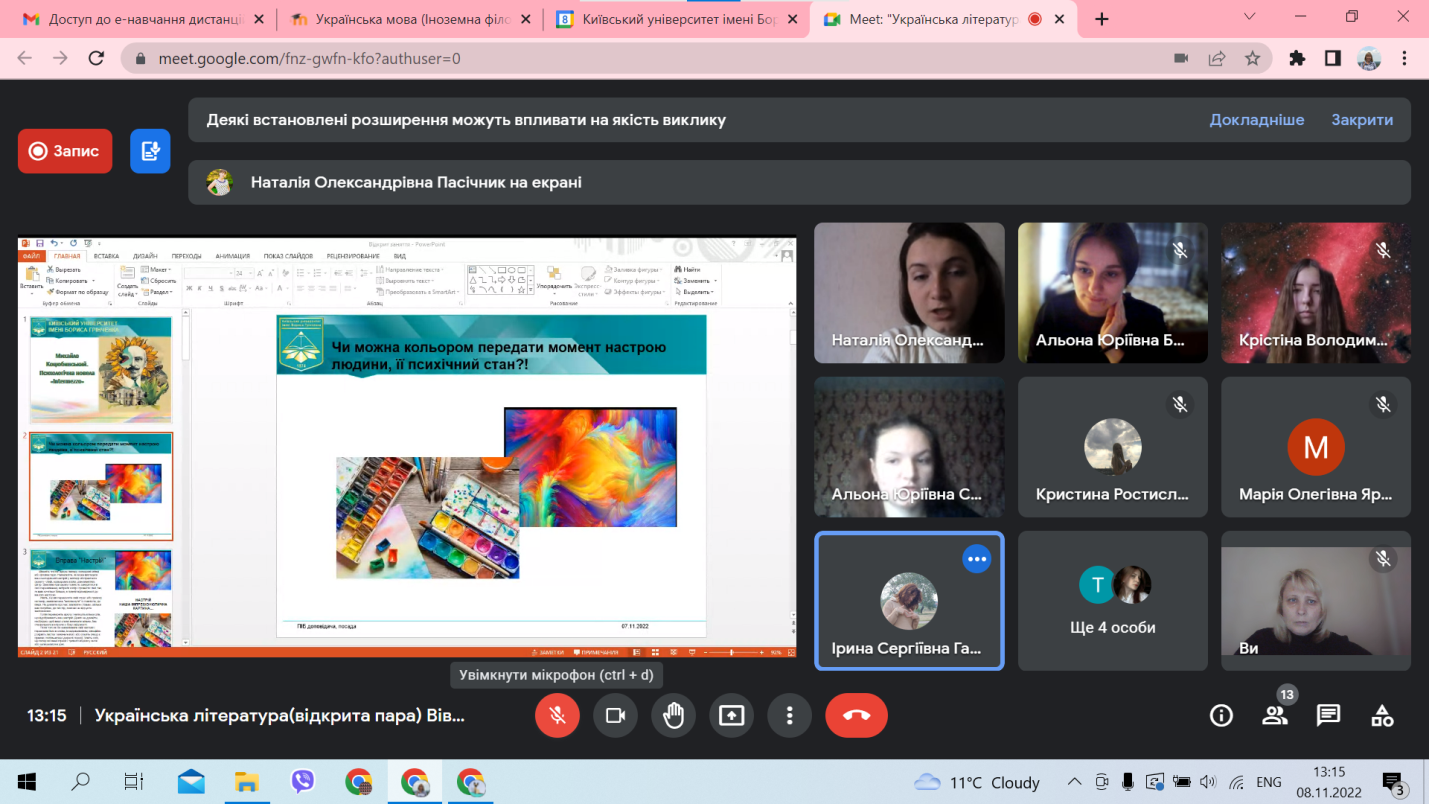 08.11.22р. у Фаховому коледжі «Універсум» Київського університету імені Бориса Грінченка відбулась інтерактивна лекція зі студентами першого курсу спеціальості «Правознавство» на тему М. Коцюбинський. Психологіча новела «Inermezzо».