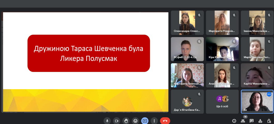 09 березня 2023 року з нагоди вшанування пам’яті Тараса Григоровича Шевченка відбулася літературна вікторина, присвячена життєвому і творчому шляху Кобзаря. Учасники заходу визначили, які з наведених фактів є неправдивими і виправили помилки. Насамкінець студенти обмінялися власним баченням ролі Тараса Шевченка в українській культурі та впливу його творчості на сучасних українців.