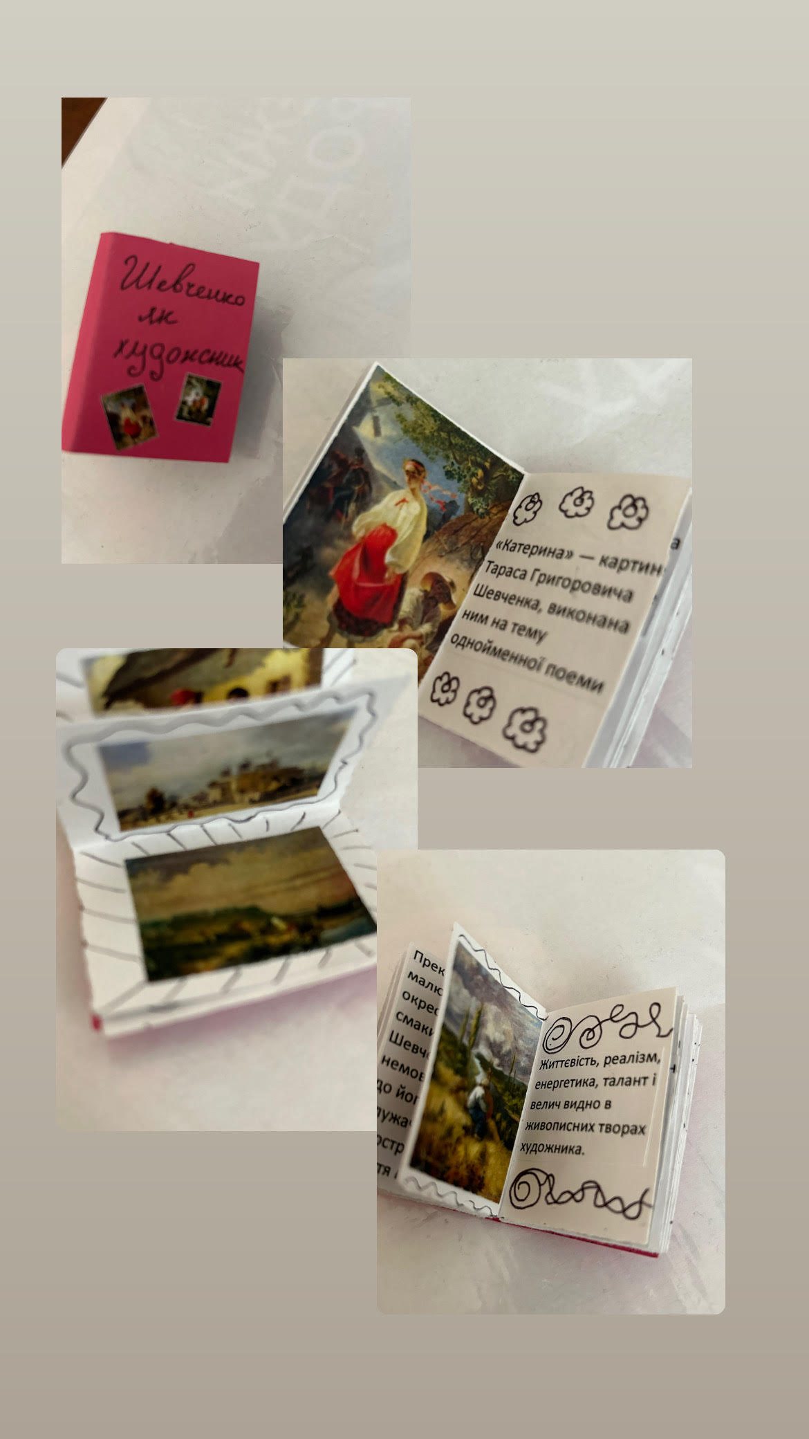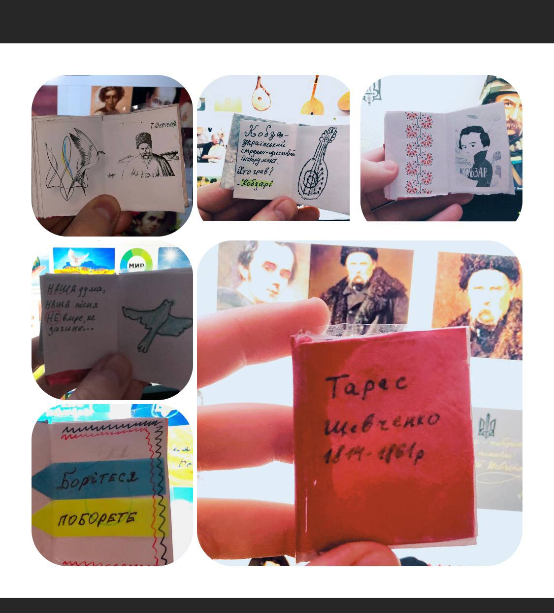 В рамках Шевченківської декади серед студентів 21 та 22 ПО груп було проведено конкурс на виготовлення книжки-саморобки про Т.Г.Шевченка. Перед студентами було завдання обрати цікавий факт з життєвого або творчого шляху митця і представити його. Всі учасники старанно виконали завдання. Роботи Хавели В. та Білецької М. заслуговуть І місце; Іващенко К., Картавцева А., Тогунова В., Прокопенко М., Величко С. – ІІ місце; решта учасників – ІІІ місце. Дякуємо за активну участь.