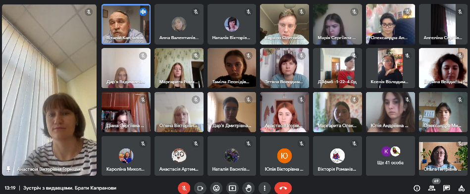 26 вересня 2023 року для студентів Фахового коледжу «Універсум» Київського університету імені Бориса Грінченка спеціальностей Журналістика (освітньо-професійна програма Видавнича справа та редагування), Дизайн  (освітньо-професійна програма Графічний дизайн) була проведена гостьова онлайн-лекція «Редакційно-видавничий процес. Видавнича справа в умовах сьогодення» Віталієм Віталійовичем Капрановим, письменником, публіцистом, співзасновником видавництва «Зелений пес».  У своєму виступі Віталій Віталійович розкрив тонкощі видавничої діяльності і поділився практичними порадами з власного досвіду. Лектор детально розповів про шлях книжки від авторського задуму до споживача, наголосив на важливості адаптації видавничої стратегії відповідно до мінливості сучасного книжкового ринку.