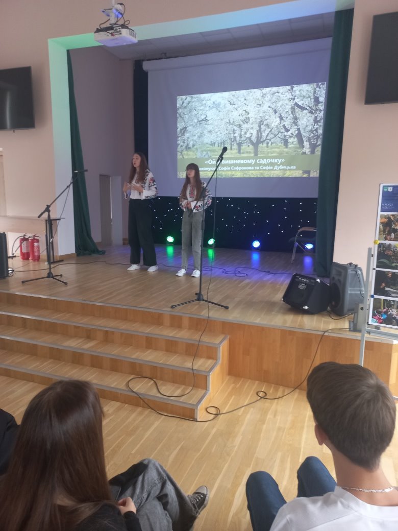 Затамувавши подих, студенти вслухалися в слова ведучих: «Не вірила, не могла осягнути істину, що стану дитиною війни. Що мирне небо України скресатимуть заграви вогнищ, тисячі, десятки тисяч вбитих, поранених, спалені міста, села. І на захист, як сотні років тому, стануть козаки, але в формі ЗСУ».