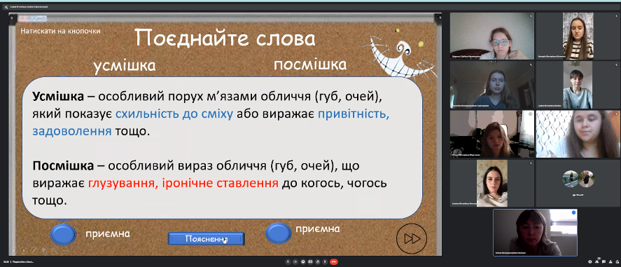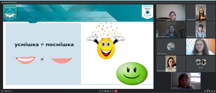 06.10.2023 року до Всесвітнього дня усмішки на парах з української мови для студентів І та ІІ курсу була проведена лексична хвилинка з метою розрізнення лексичного значення слів «усмішка», «посмішка». Студенти ознайомилися з історією походження свята. Викладачі запропонували цікаві вправи для розрізнення цих понять.