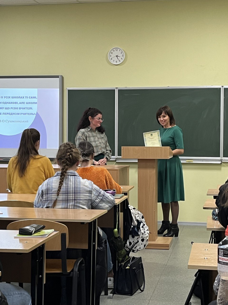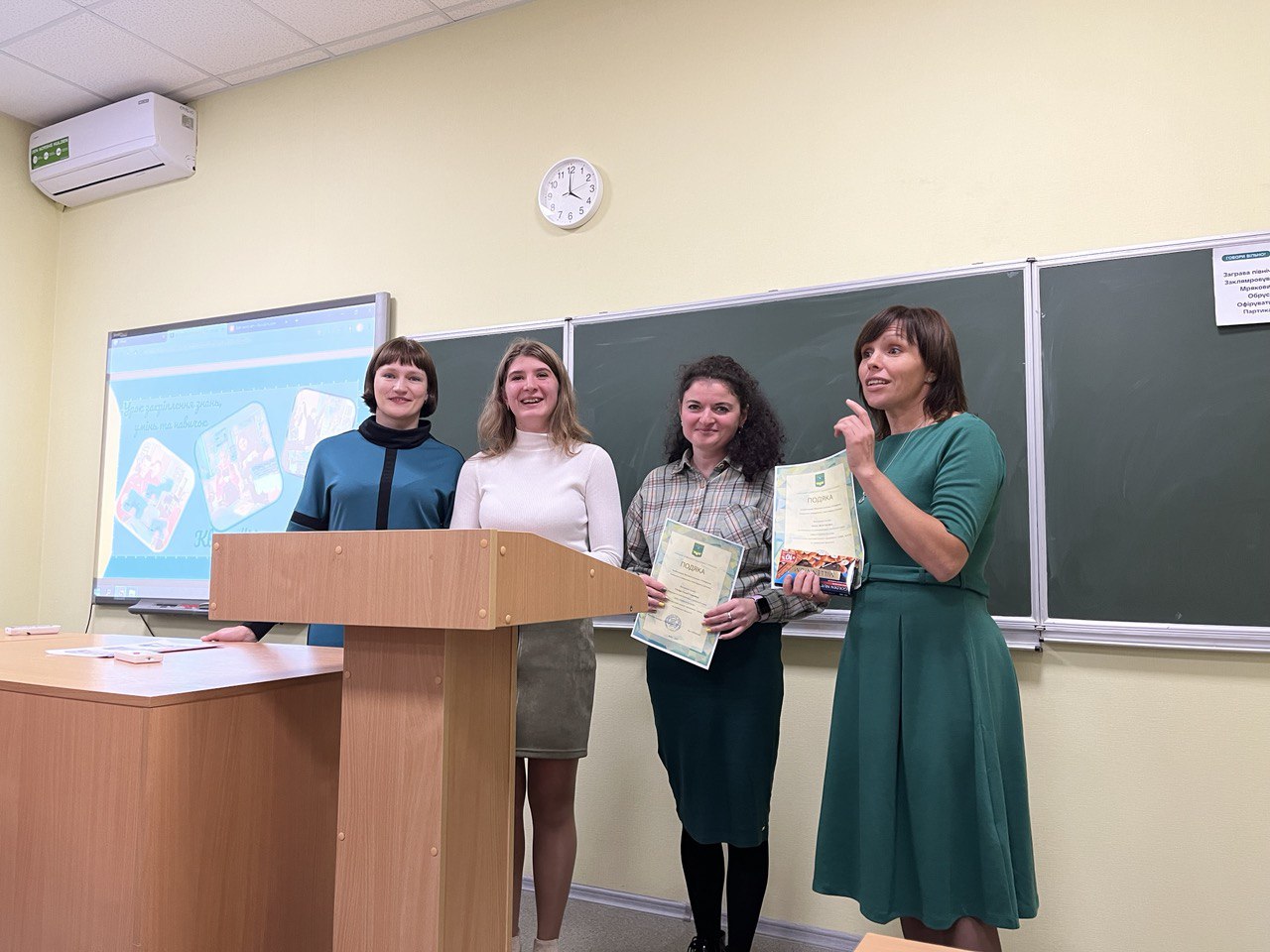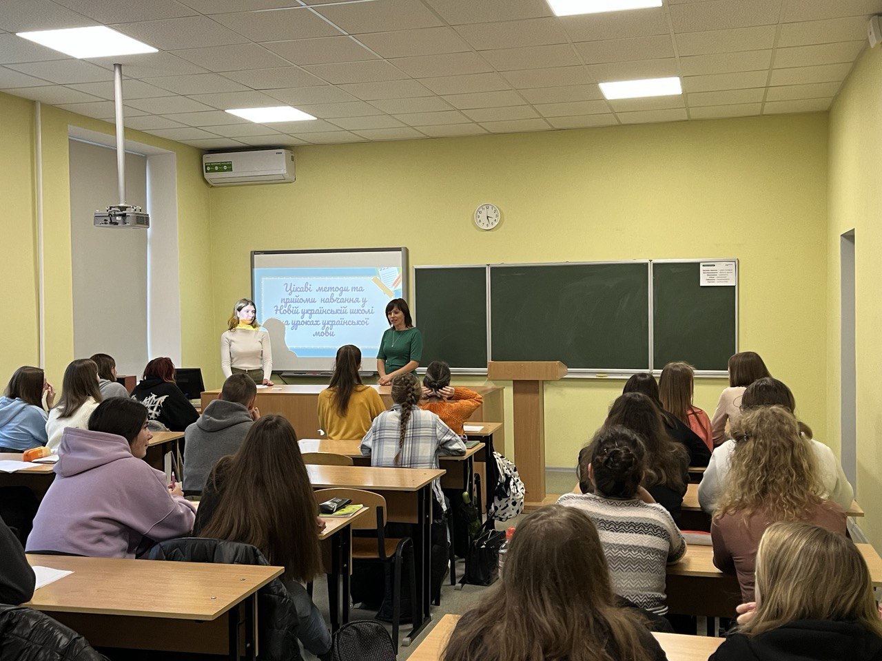 З власним досвідом роботи ознайомили студентів Гінзбург Євгенія Геннадіївна та Різник Юлія Сергіївна, у минулому – випускниці нашого коледжу. Вчителями було розкрито особливості роботи з мовно-літературною освітньою галуззю. Запропоновані практичні поради використання інноваційних технологій організації навчального процесу. Студенти мали змогу поставити запитання вчителям, побачити креативні розробки тематичних тижнів та ранкових зустрічей.