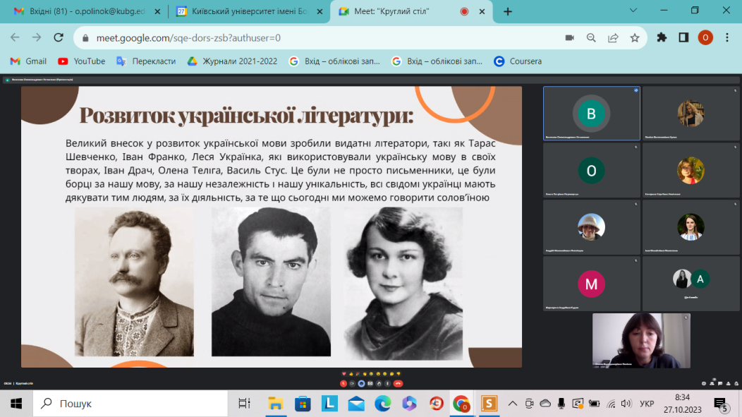 27.10.2023 року у Фаховому коледжі «Універсум» у межах декади циклової комісії видавничої справи, культури та української філології проведено круглий стіл «Вартові українського слова» для студентів групи ФВфмб-1-21-4.0д.