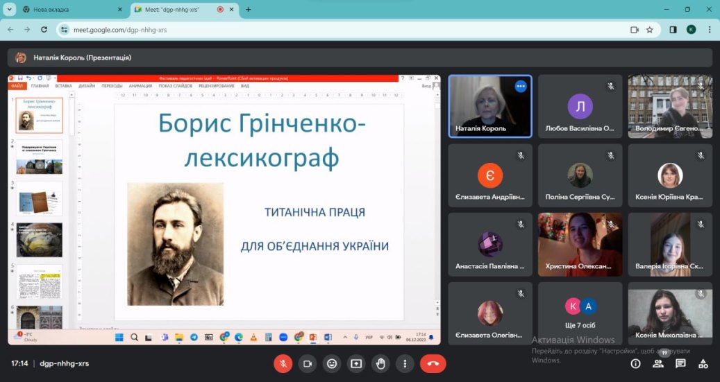 6 грудня 2023 року у Фаховому коледжі «Універсум» для студентів 1 курсу спеціальності «Журналістика» відбулася кураторська година «Б.Д. Грінченко-лексикограф: титанічна праця для об’єднання України», присвячена 160-річчю з дня народження Б.Д. Грінченка. Мета заходу – ознайомити майбутніх журналістів та видавців з найфундаментальнішою працею Б.Д. Грінченка-лексикографа «Словарь української мови», розкрити важливість цього видання для об’єднання України, збереження та розвитку української мови.