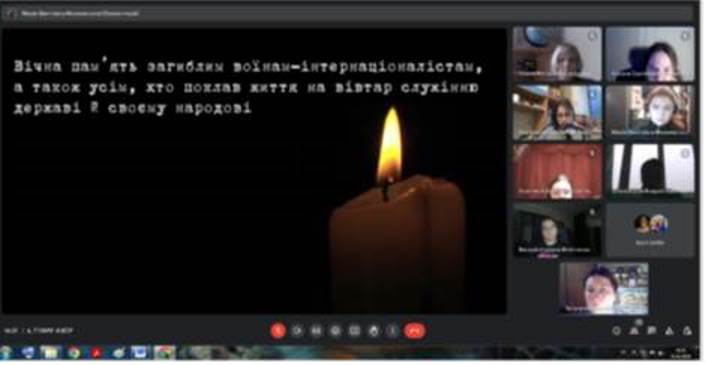 15 лютого 2024 року для груп ВСРфмб-2-20-4.0д і ПОфмб-2-20-4.0д проведено виховну годину до Дня вшанування учасників бойових дій на території інших держав. Мета заходу – вшанувати пам’ять загиблих воїнів і тих ветеранів локальних збройних конфліктів, які наразі використовують свій бойовий досвід для захисту України від російських загарбників.