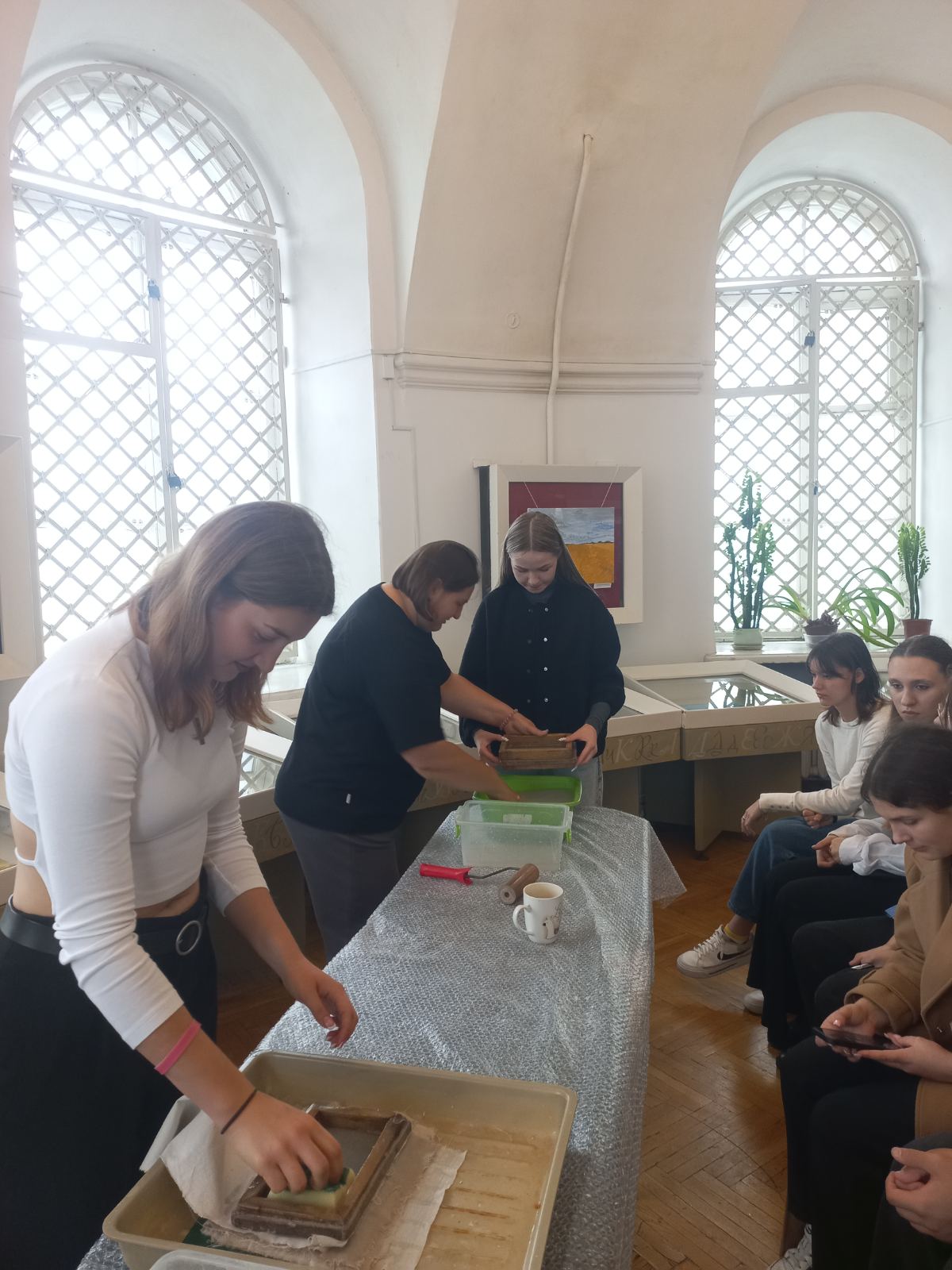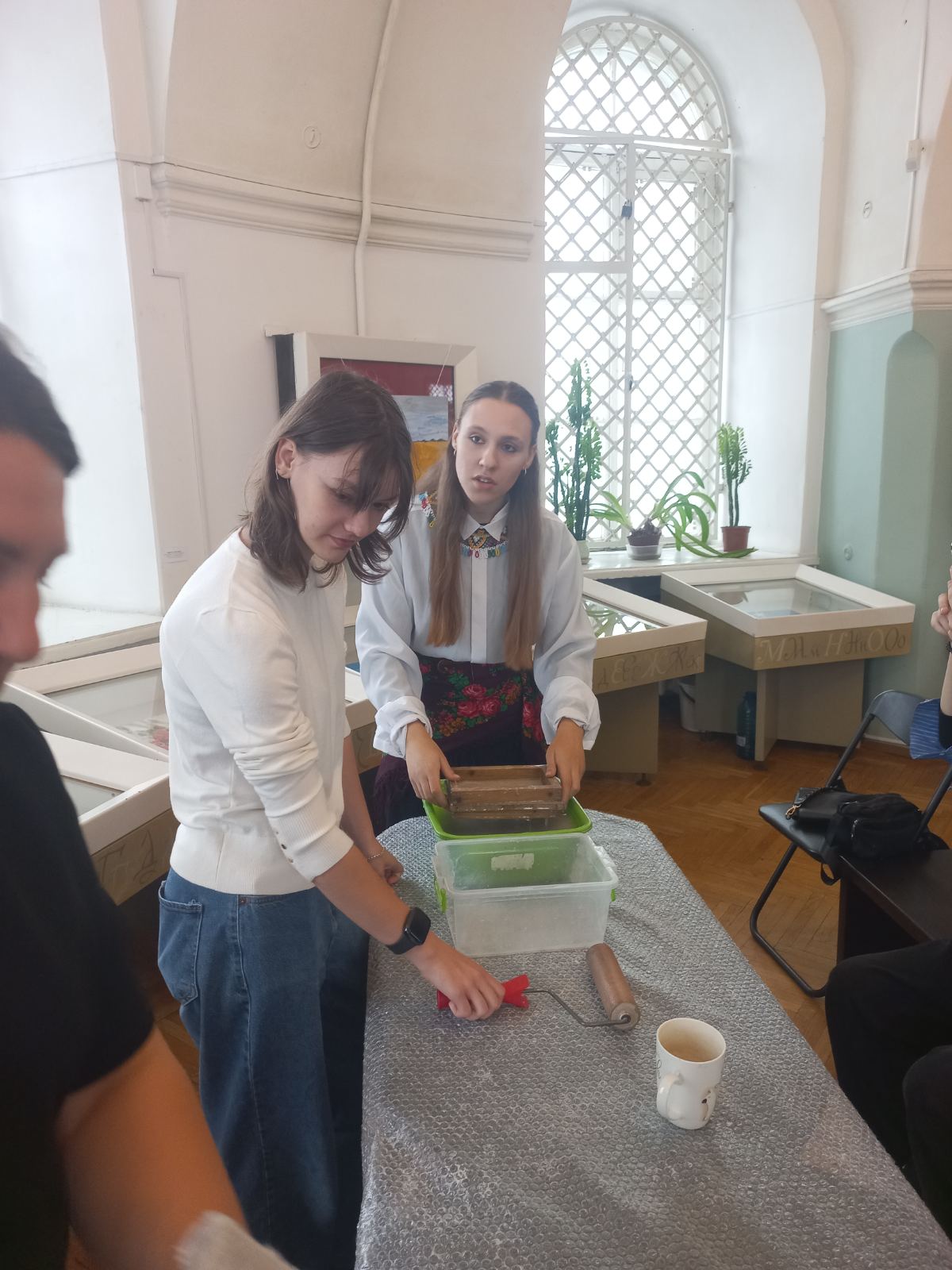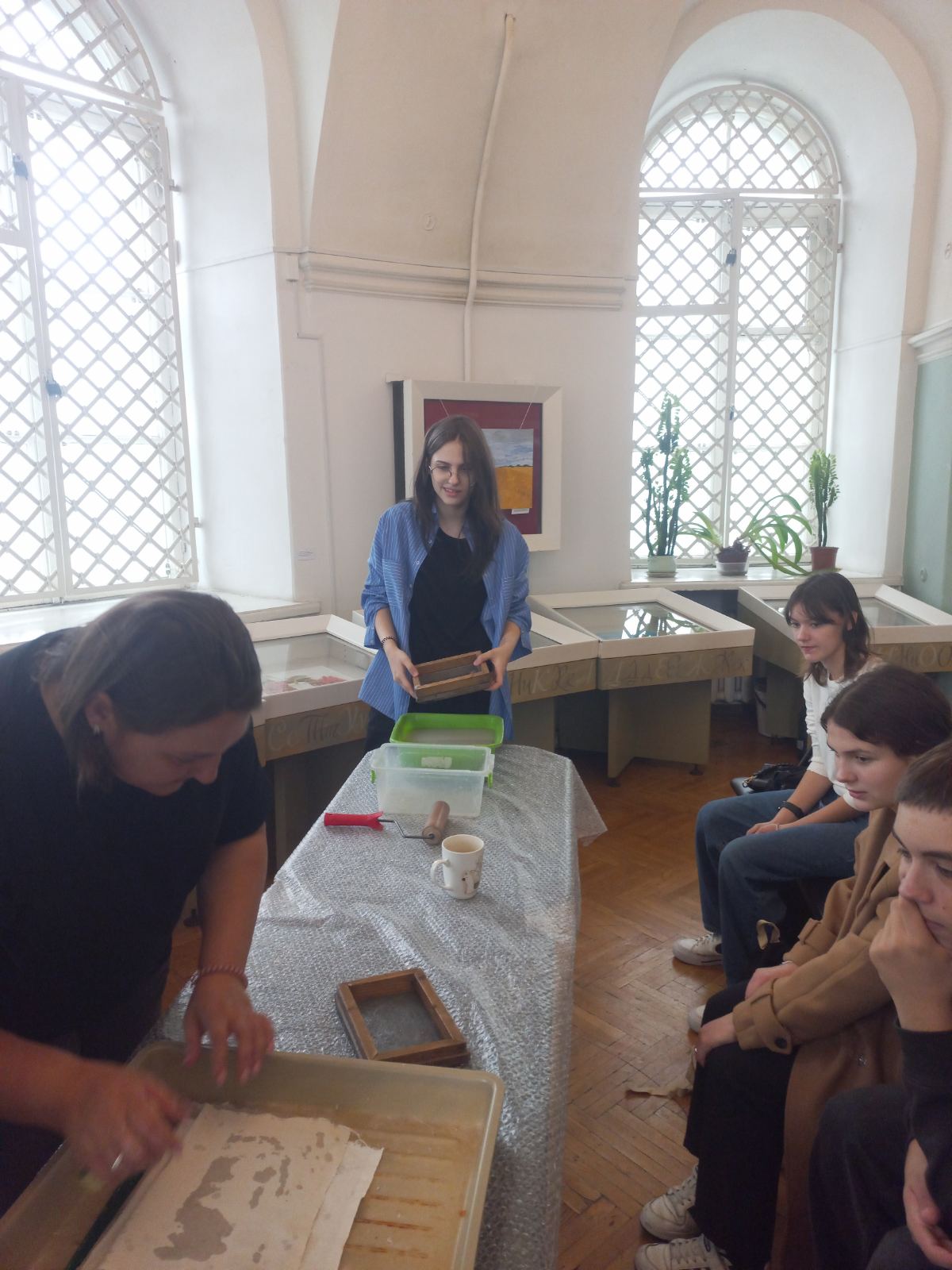 Майстер-клас з виготовлення паперу став особливо захоплюючим етапом занятия. Студенти ознайомилися з технологією виготовлення паперу, побачили, як виготовлявся папір з тканини, взяли участь у цьому процесі, створивши власні аркуші паперу. Цей досвід допоміг їм краще зрозуміти важливість друкованого слова та фізичних носіїв інформації у журналістській роботі.