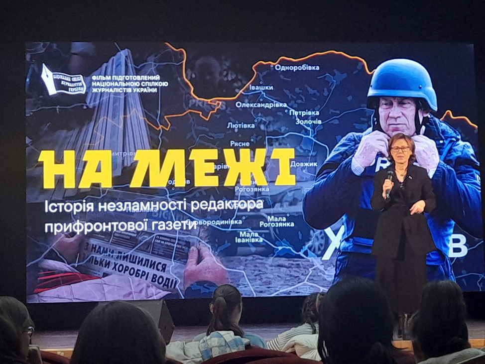 Після цього відбувся показ документального фільму «На межі: історія незламності редактора прифронтової газети», створеного інформаційною службою Національної спілки журналістів України. Героєм фільму став головний редактор газети «Зоря + Вісник Богодухівщини» Василь Мирошник, який показав власний досвід та досвід інших небайдужих людей, котрі попри складність і небезпеку, друкують і розповсюджують українську газету в напівзруйнованих селах Харківщини.