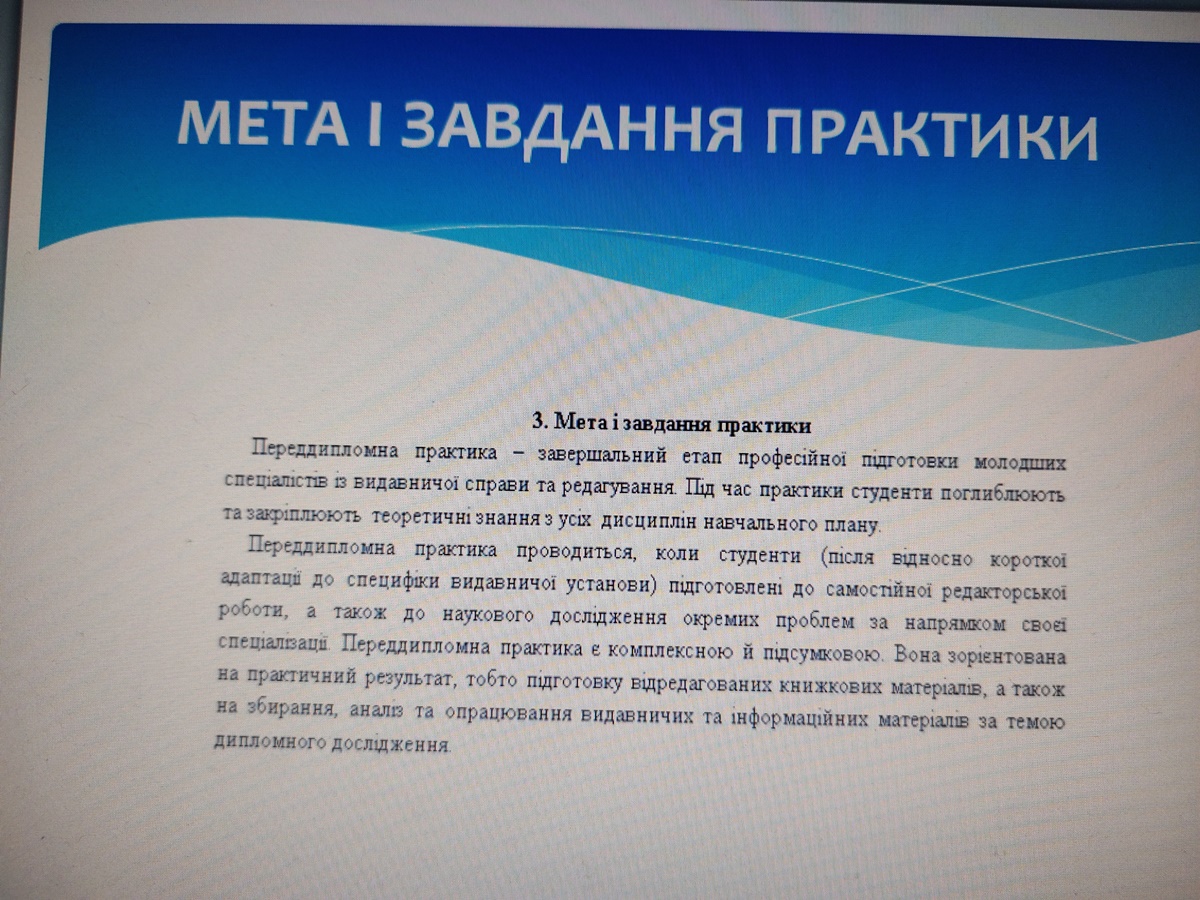 Під час зустрічі студенти ознайомилися з метою, завданнями та етапами проходження практики, особливостями ведення щоденника, написання звіту та оформлення підсумкових документів. Було акцентовано увагу на дотриманні академічної доброчесності, корпоративної етики, а також на ролі практики у формуванні професійних компетентностей.